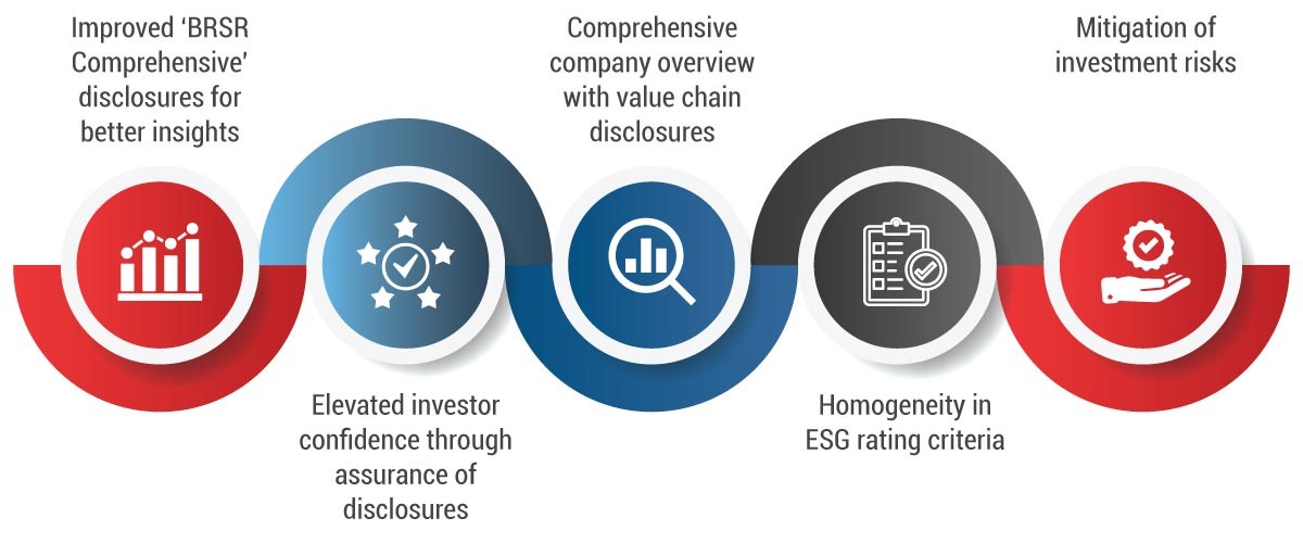 As BRSR reports mainly consist of self-disclosed data from companies, third-party assurance of ‘BRSR Core’ parameters will enhance the reliability of these disclosures and informed decision-making for investors. ERPs will now be required to develop a new rating criteria to provide a Core ESG rating, which shall be based on assured BRSR Core parameters. While BRSR covers a broad spectrum of disclosures, the assurance is specifically targeted at critical disclosures as ‘BRSR Core’, limiting the compliance costs for companies. The inclusion of value chain disclosures, which were previously categorized under leadership indicators, improves accuracy. Â