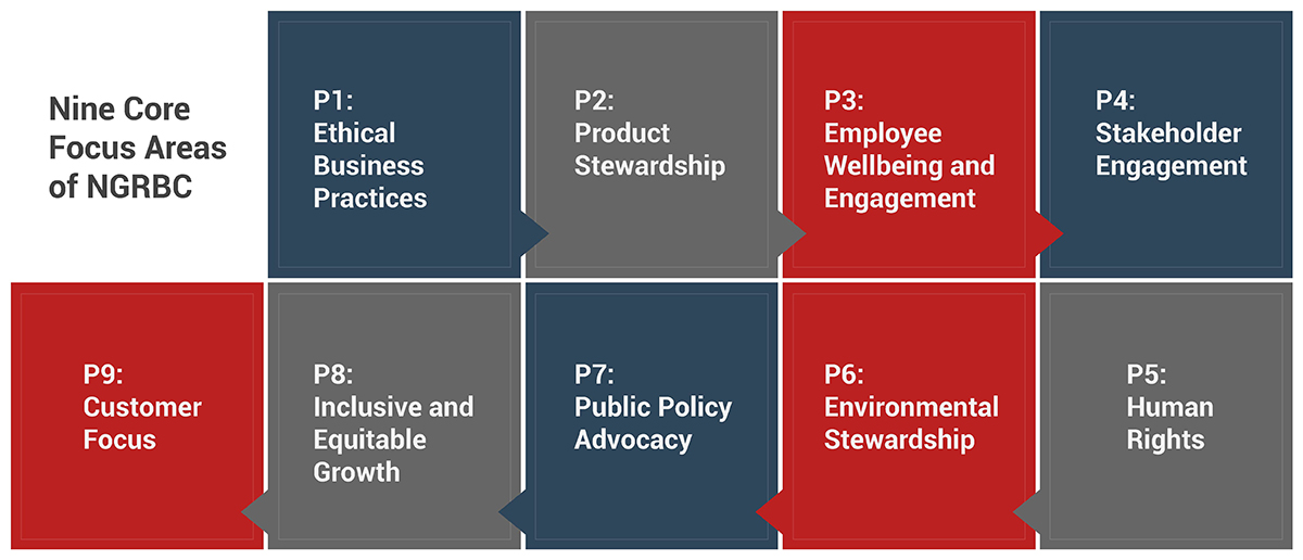 Nine core principles laid out in the National Guidelines on Responsible Business Conduct (NGRBC) are aligned with by the BRSR. The following focus areas are covered by these nine principles: