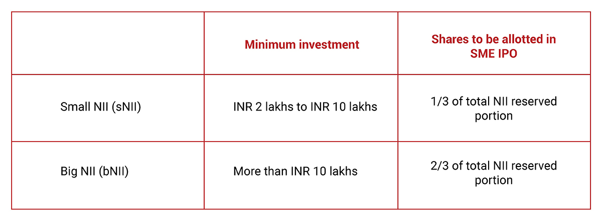 Earlier, NII allocation norms under SEBI were distinct and complex for SME IPOs. There was no distinct segregation between Big and Small NIIs in SME IPO.